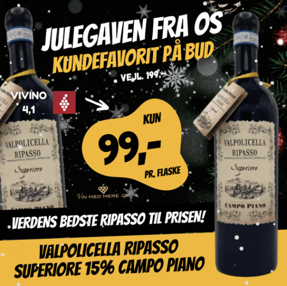 Du får nu denne fantastisk Ripasso til KUN 199 kr!  Vi sluger nemlig statens nye emballageafgift på vinen, så I endnu engang kan købe vores meget populære Ripasso til en helt skarp pris.