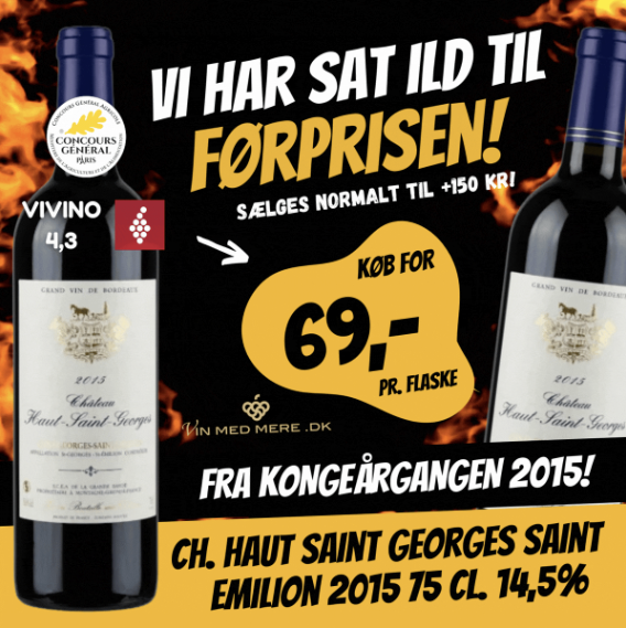 2015 regnes for en af de største årgange i nyere tid på Bordeauxs højre bred (Saint-Émilion og Pomerol). Det var et "solår", der gav druerne perfekt modenhed, høj alkohol (14,5%) og en fløjsblød struktur, der gør vinen drikkeklar nu, men også holdbar i mange år frem. Ovenikøbet er Saint-Georges-Saint-Émilion den mindste og mest prestigiøse af satellit-kommunerne. Den ligger i forlængelse af selve Saint-Émilion, og Château Haut-Saint-Georges deler den eftertragtede undergrund af ler og kalksten, der giver vinen sin kraft og elegance.