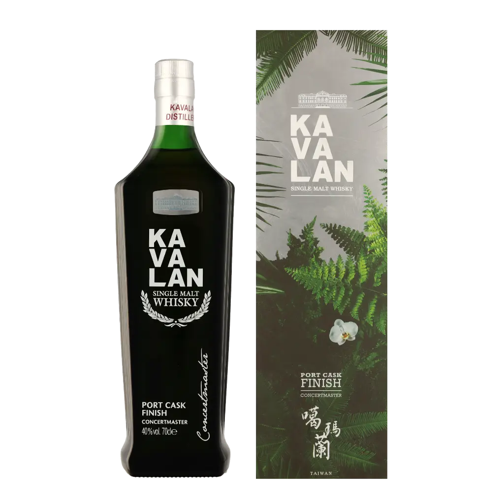Kavalan Concertmaster er en single malt whisky fra Taiwain. Concertmaster lagres først på bourbonfade, og får efterfølgende en såkaldt ”finish” på forskellige typer portvinsfade, både Ruby, Tawny og Vintage-portvin. Portvinslagringen giver et ekstra lag af kompleksitet til en whisky, som på grund af Taiwans tropiske klima allerede har nået stor dybde og modenhed.