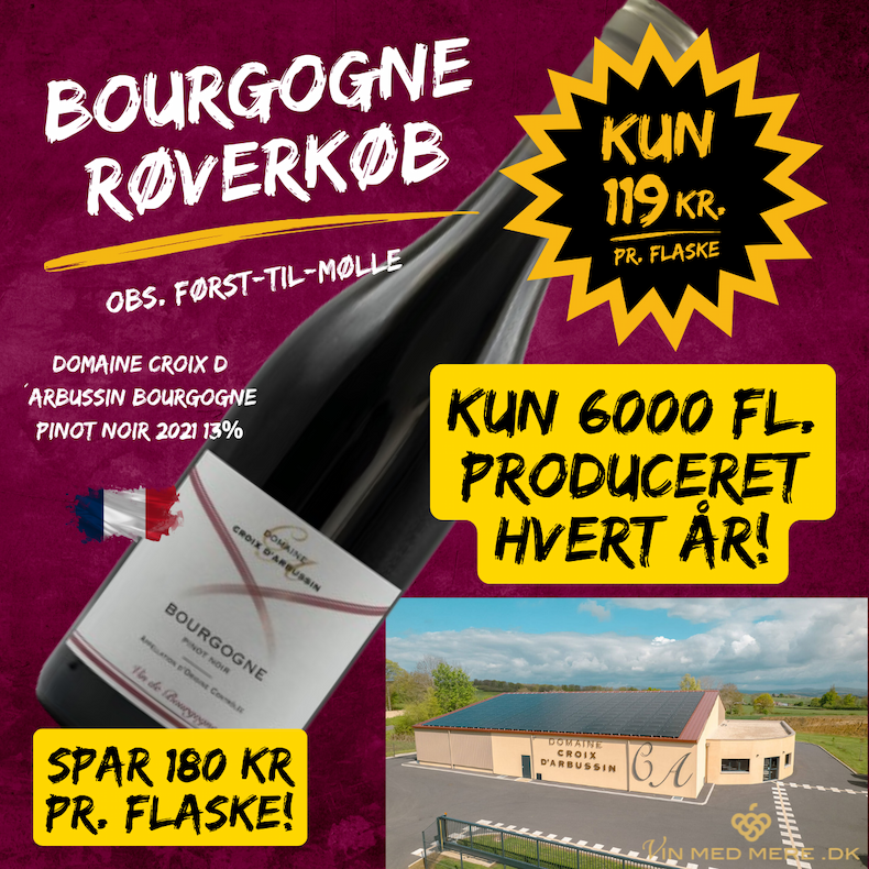 Domaine Croix d'Arbussin Bourgogne Pinot Noir 2021 er en prisbelønnet top-Bourgogne produceret i en begrænset produktion på blot 6.000 flasker. Vinen er lavet på 100% Pinot Noir og er lagret 12 måneder på franske egetræsfade, hvilket giver en fin balance mellem frugt, krydderi og fadkarakter. Den kan nydes i sin ungdom, men har et lagringspotentiale på 4-6 år.