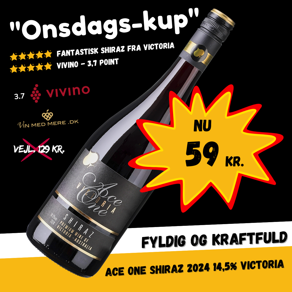 Australiens Victoria er verdensberømt for sine virkelig velsmagnede Shiraz-vine. Ace One Shiraz 2024 forener alt det bedste fra regionen: Fyldige modne frugter, mild krydderi og silkebløde tanniner!