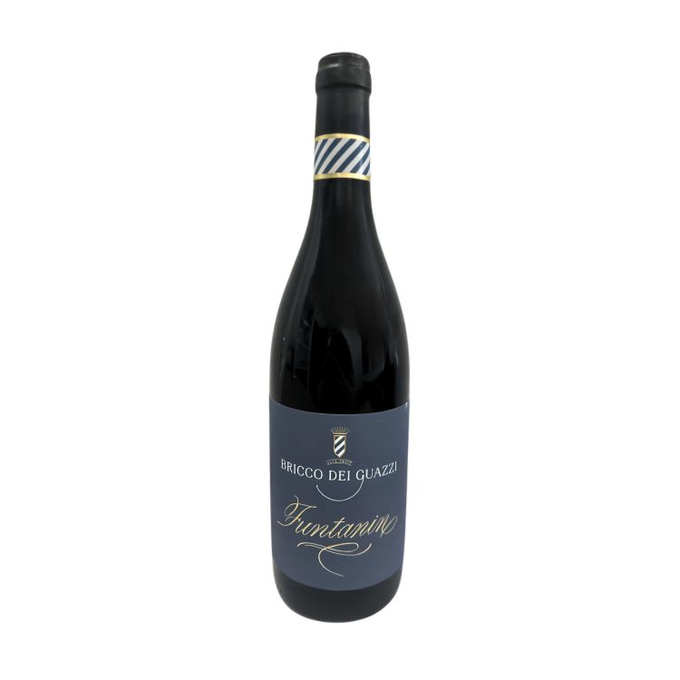 Bricco dei Guazzi Funtanin 2019 er en charmerende og elegant rødvin fra Piemonte i Italien, lavet på den berømte Nebbiolo-drue, den samme drue, som står bag den klassiske og prestigefyldte Barolo. Nebbiolo anses som Italiens konge blandt røde druer og er kendt for sin komplekse og nuancerede karakter, med højt tannin- og syreindhold samt en intens aromaprofil, der byder på noter af kirsebær, roser, lakrids og trøfler. Druens navn stammer fra det italienske ord "nebbia", som betyder tåge, og refererer til de tågede forhold i de vinmarker, hvor den dyrkes.