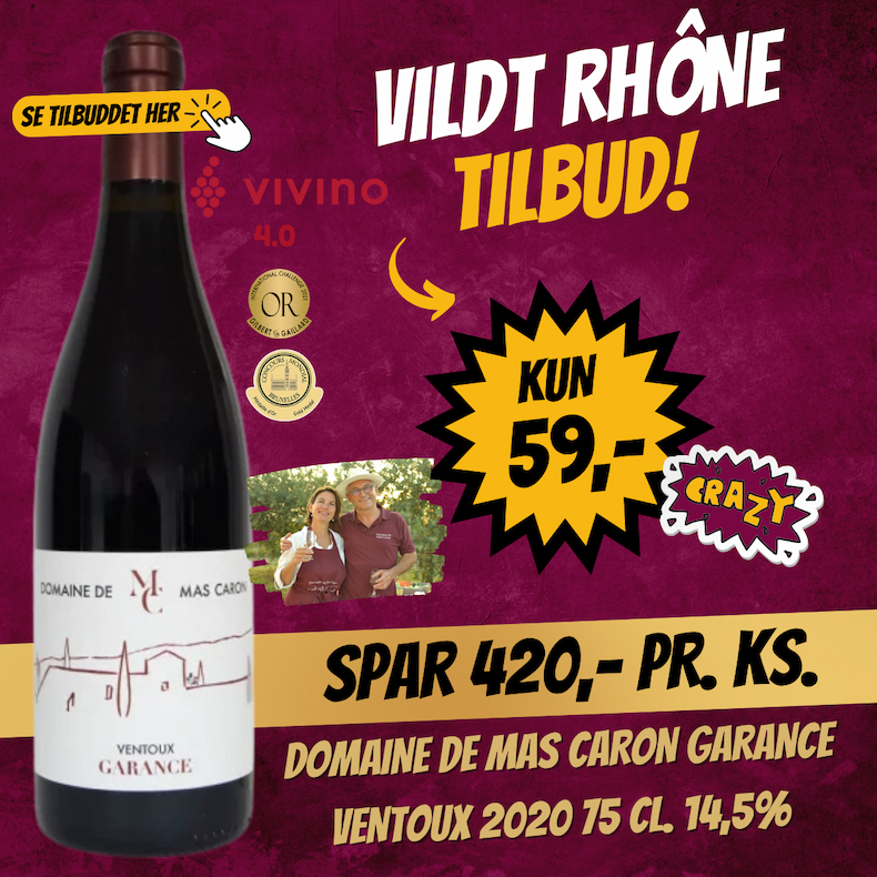 Fra det lille familieejede sted Domaine de Mas Caron kommer denne lækre Rhône vin med masser af saft & kraft. Som en typisk kraftfuld Rhóne vin er denne også fyldt med varme, fylde og struktur. Lang behagelig eftersmag.