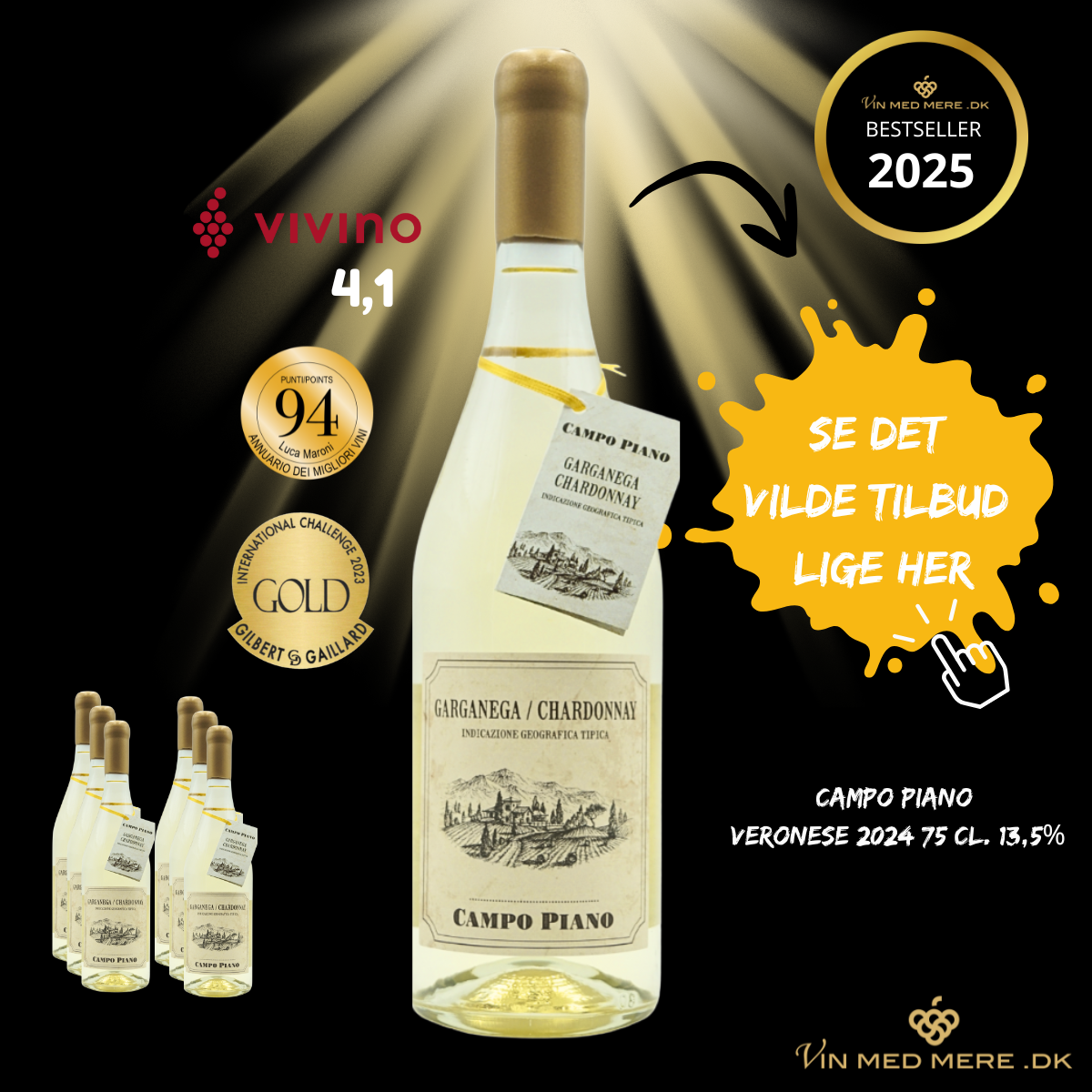 WOOOW EN LÆKKER VIN FRA CAMPO PIANO! Dette er en virkelig skøn og smagfuld hvidvin, som er produceret af 80% Garganega-druer og 20% Chardonnay-druer, der er dyrket på Campo Piano´s egne vinmarker i 600 meters højde. Druerne er nænsomt håndplukket og omhyggeligt udvalgt, og har ligget 20 dage til tørre – samme metode som man anvender til Amarone-rødvinene.