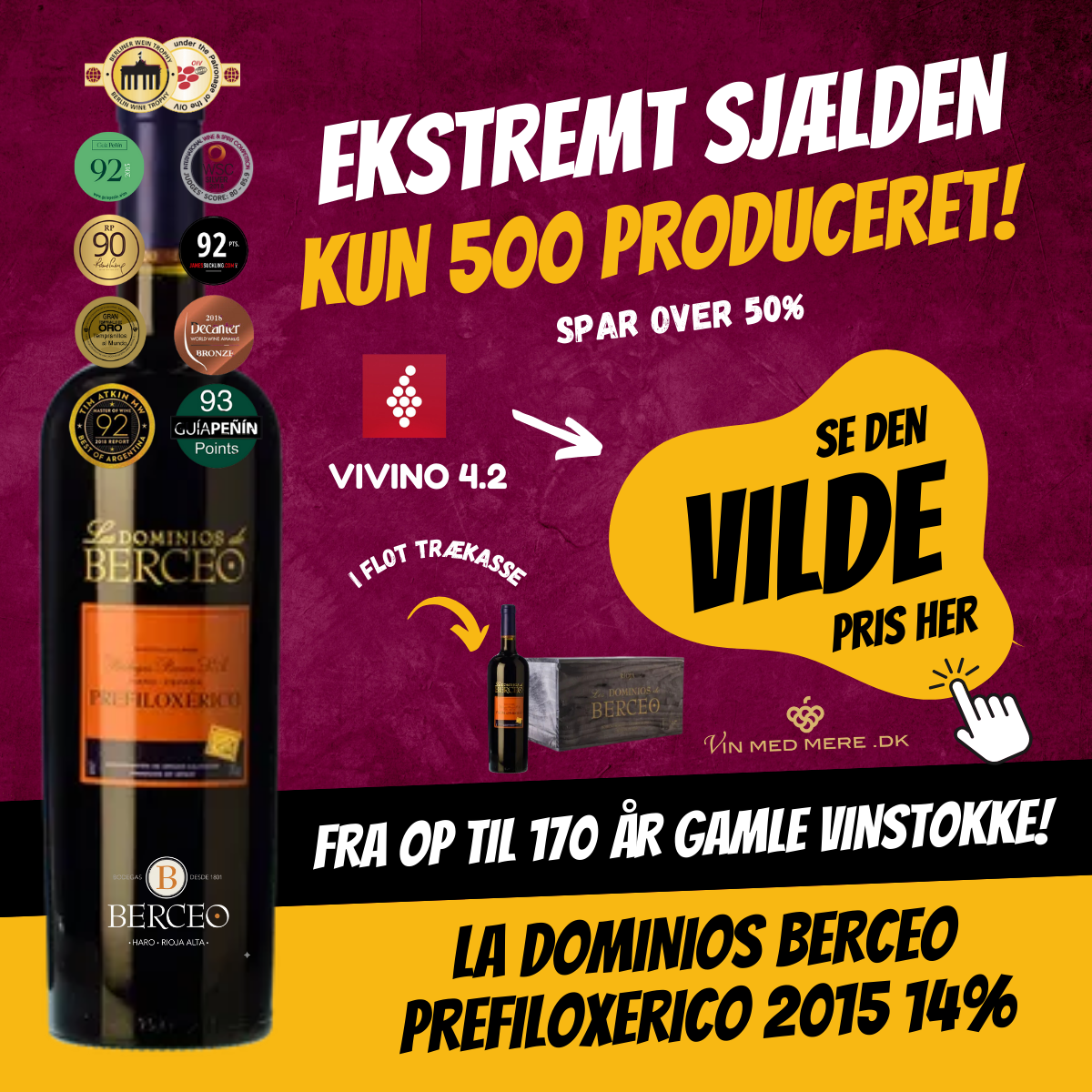 MEGET STOR ANBEFALING! Få fingrene i denne ekstremt sjældne Rioja fra anerkendte Bodegas Berceo. 2021-årgang. Los Dominios de Berceo Prefiloxerico 2015 er en ekstremt sjælden, internationalt anerkendt Rioja-vin fra særprægede, ældgamle Tempranillo-markeder, med en profil der er både rig på frugt, mineralitet og fad, samt har markant lagringspotentiale — og nu kan du opleve ægte moden Rioja hjemme hos dig selv.