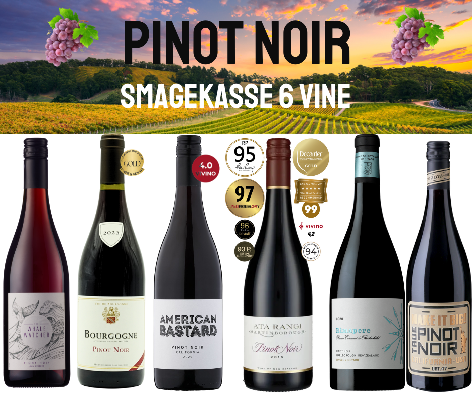 EFTER MANGE FORESPØRGSLER TILBYDER VI NU DENNE PINOT NOIR SMAGEKASSE I EN BEGRÆNSET PERIODE! Du får 6 fantastiske vine, som giver en SUPERB smagsoplevelse, lavet på særligt udvalgte druer!