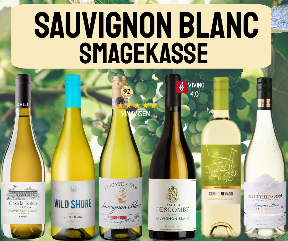 NYHED! Vi har lavet en LÆKKER SAUVIGNON BLANC SMAGEKASSE med 6 flasker rigtig, rigtig god vin til KUN 349,- pr. kasse. Det er alle super populære vine!