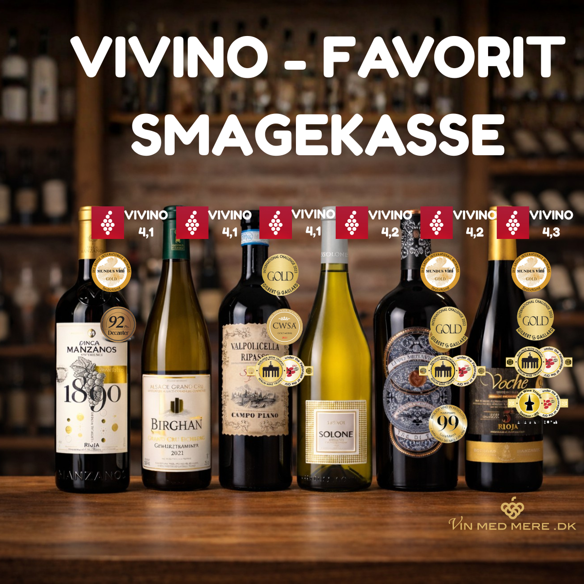 NYHED! Vi har lavet en LÆKKER "VIVINO SMAGEKASSE med 6 flasker rigtig, rigtig god vin til KUN 599,- pr. kasse. Det er alle super populære vine som har flotte bedømmelser fra VIVINO! Se lige disse super skønne og meget populære vine, som alle byder på en dejlig smagsoplevelse.